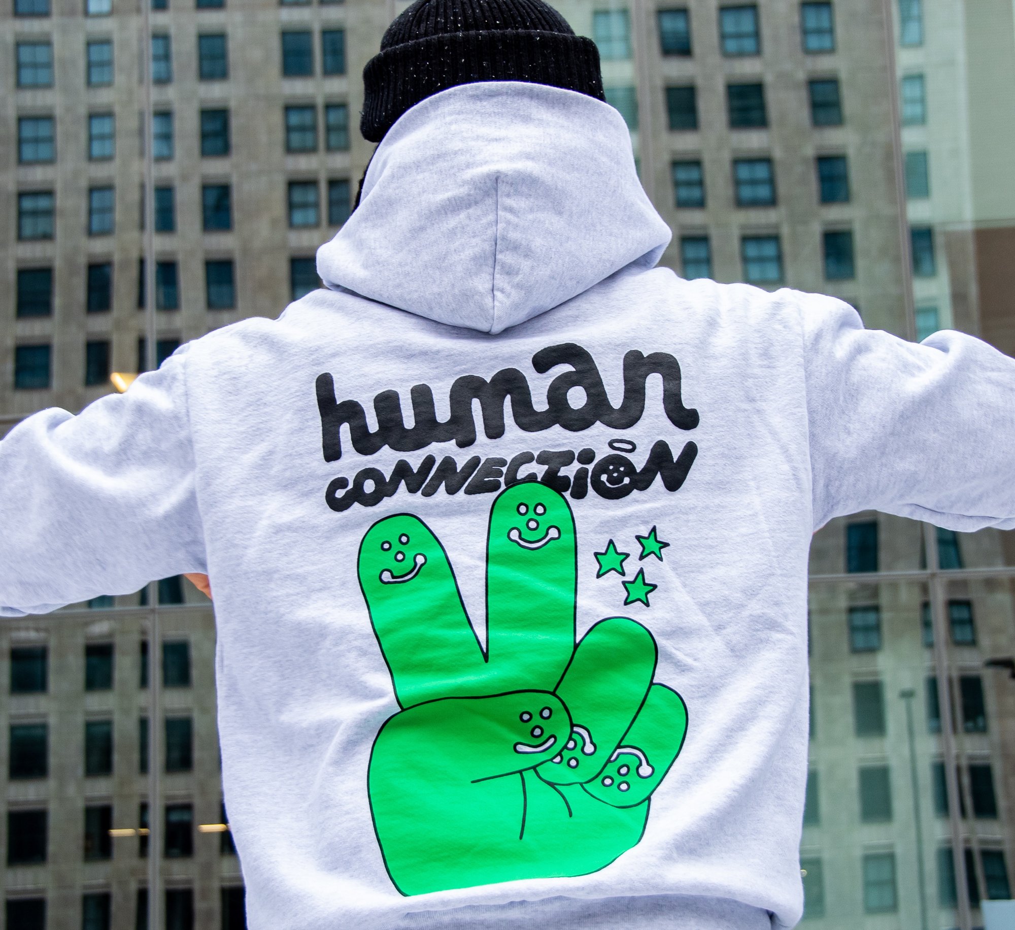 2020 was a bugged out year. We couldn't hang out with our friends and family the way we normally could. One thing we lacked as a human race was basic human touch. This durable, 14oz cotton hoodie is warm, comfy, and designed to feel like a hug! That neon green is poppin though.